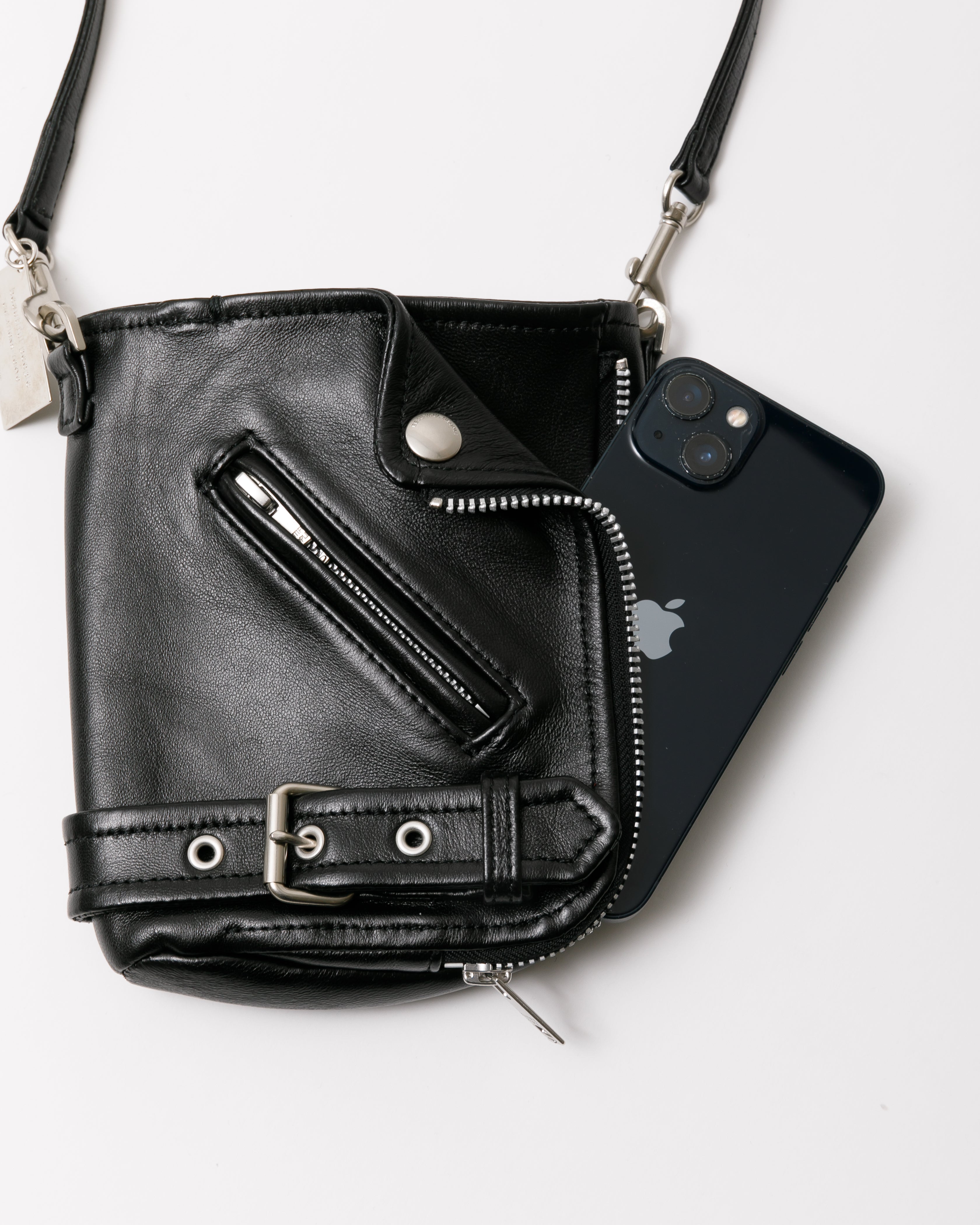 ・ライダースジャケットのディティールを凝縮したデザイン                ・サコッシュタイプのライダースバッグ