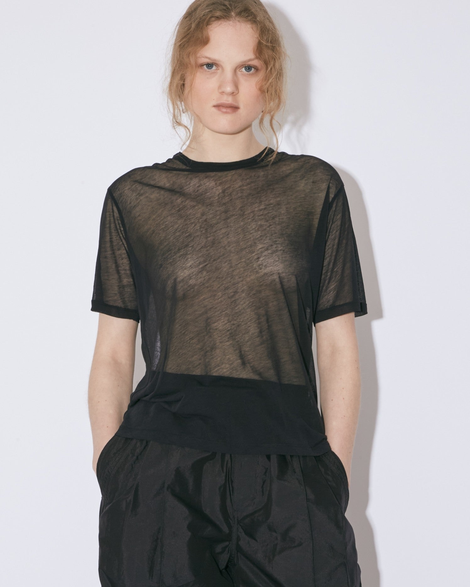 ・コンパクトなサイジングのシースルーTシャツ