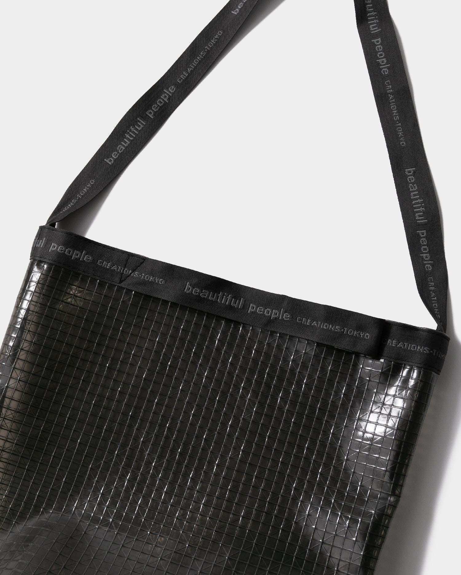 Vinyl logo tape shoulder bag