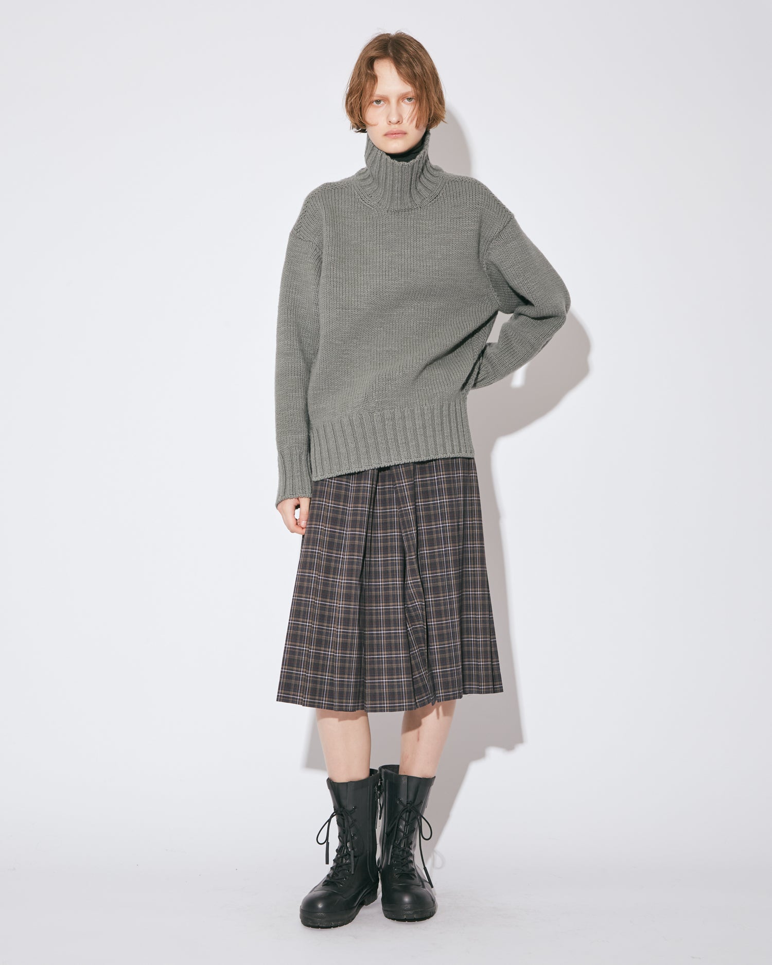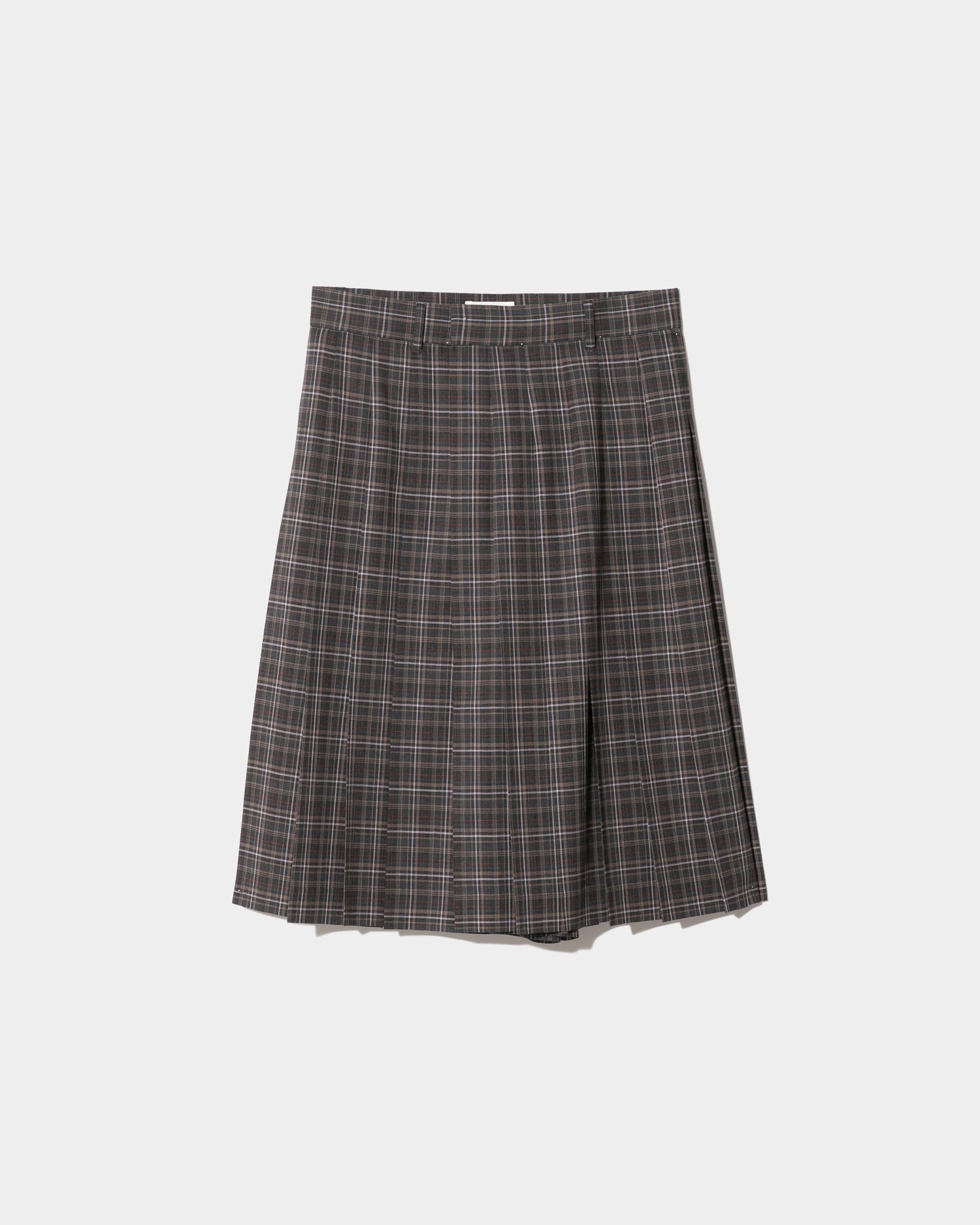 sheer wool check pleated skirt pants