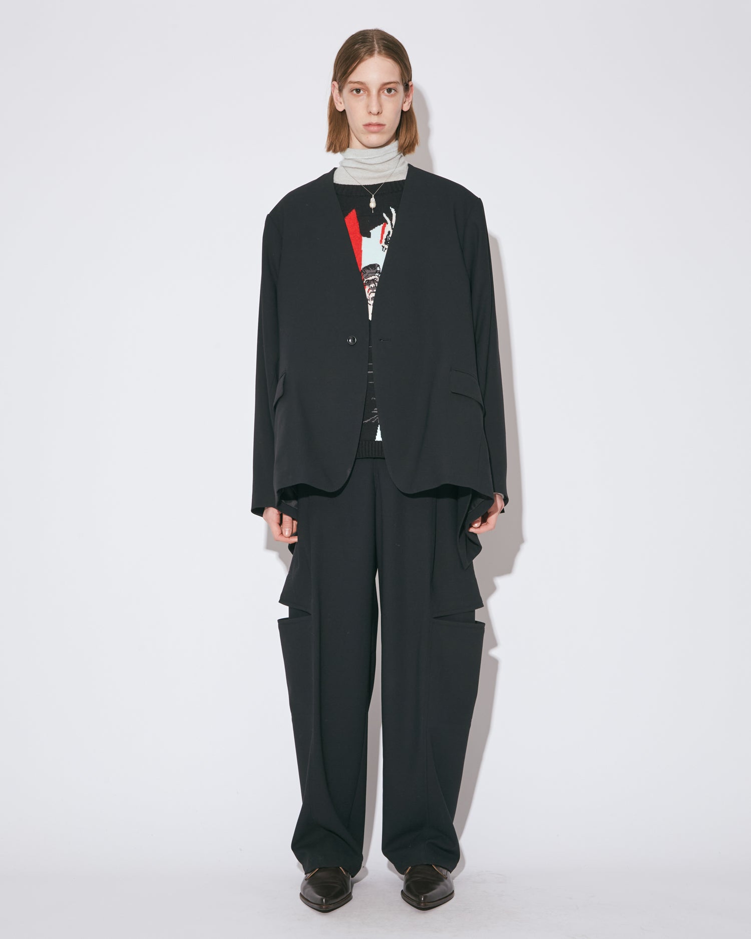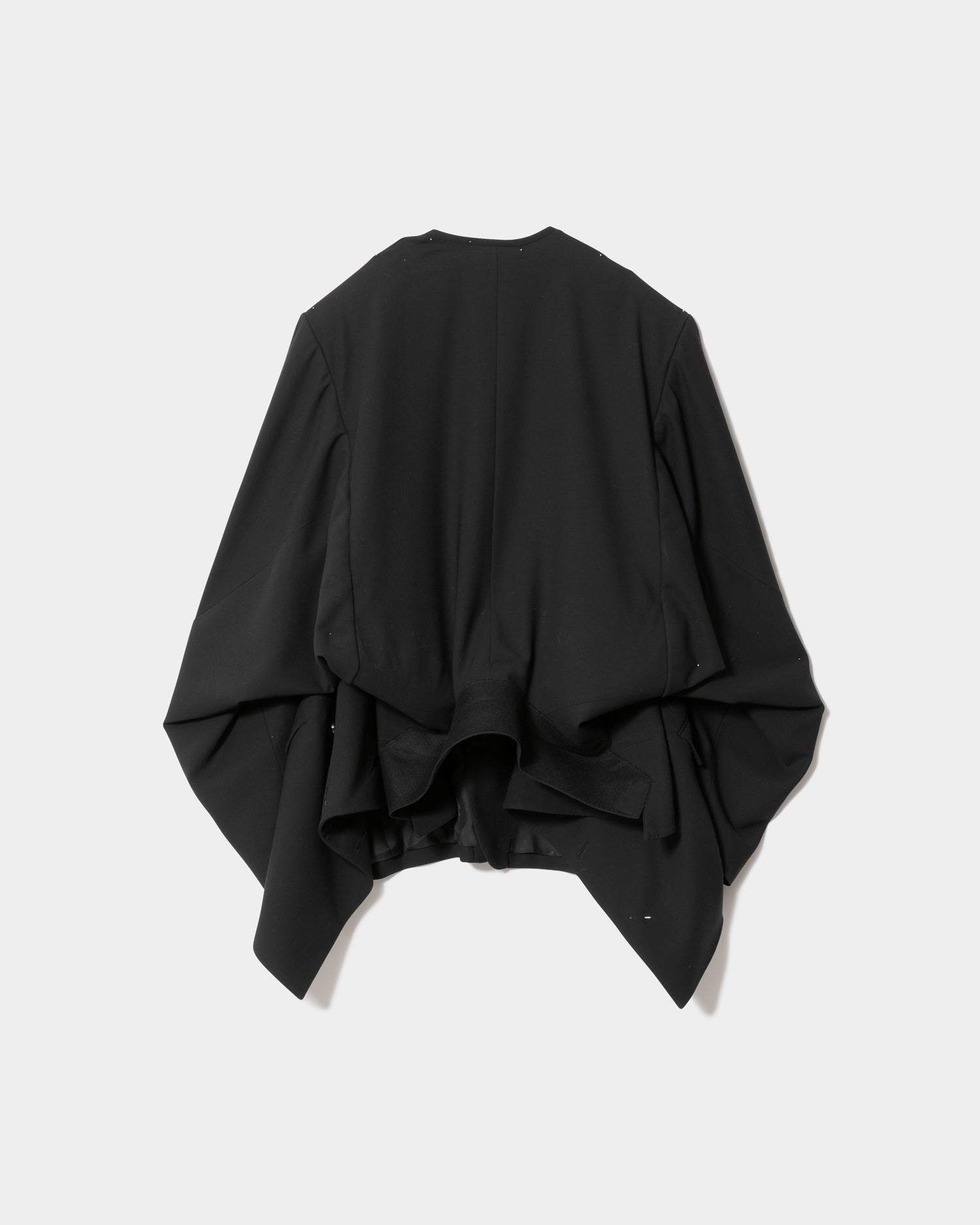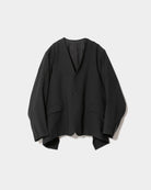 ・上下ひっくり返すことで腰丈のノーカラージャケットに変化