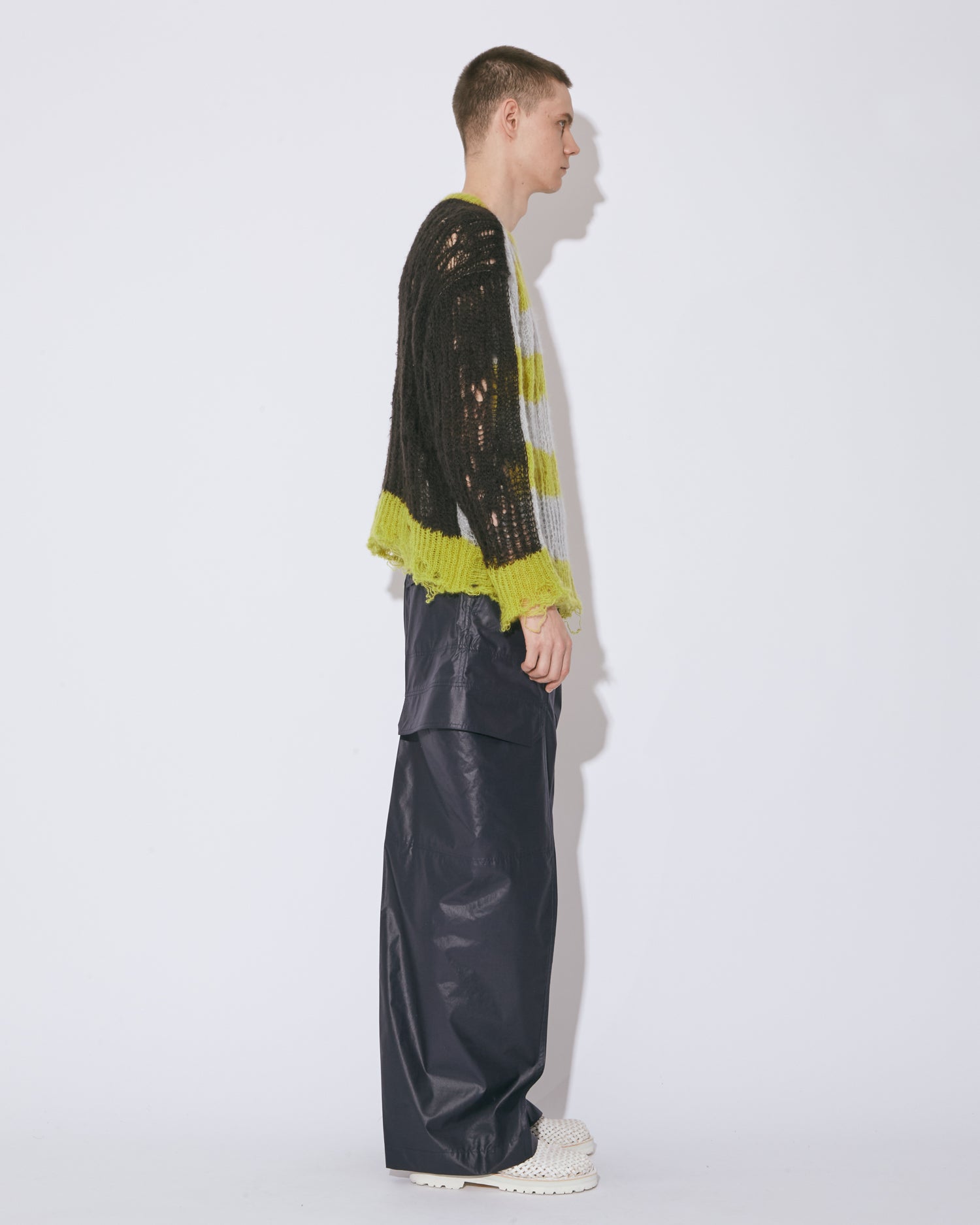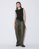 ・カーゴパンツの構造線にスリットを入れ脇線を下に落とした独特なO脚シルエットが特徴