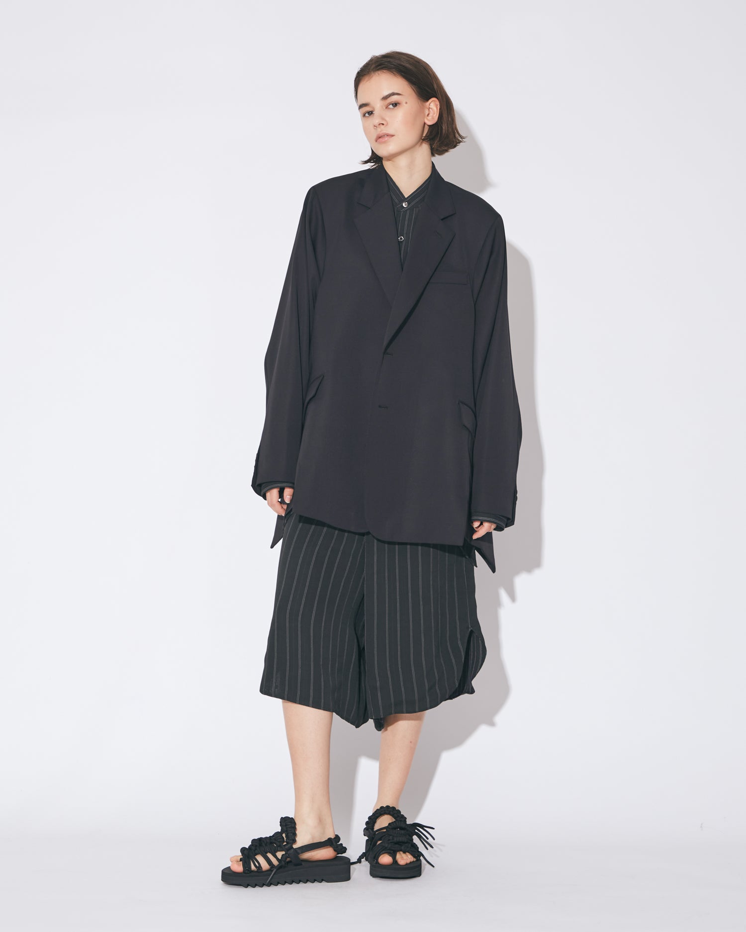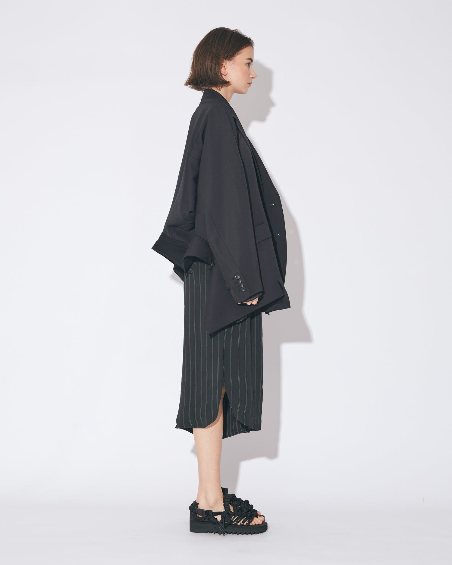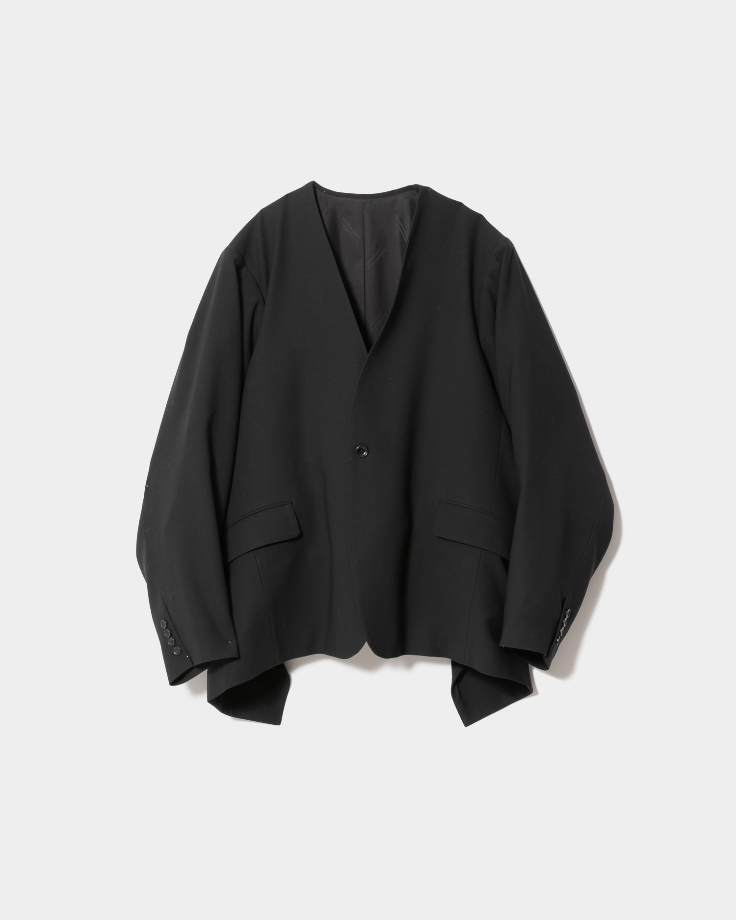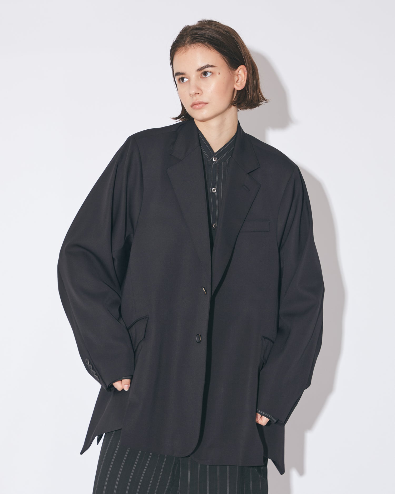 ・腰下丈のノッチドラペルシングルブレストジャケット