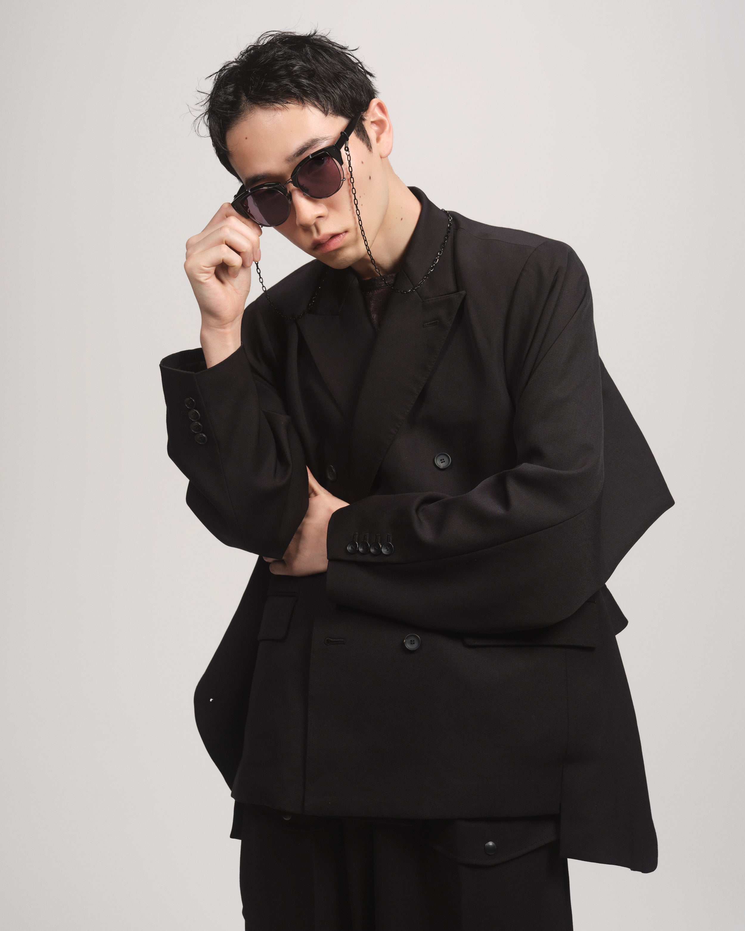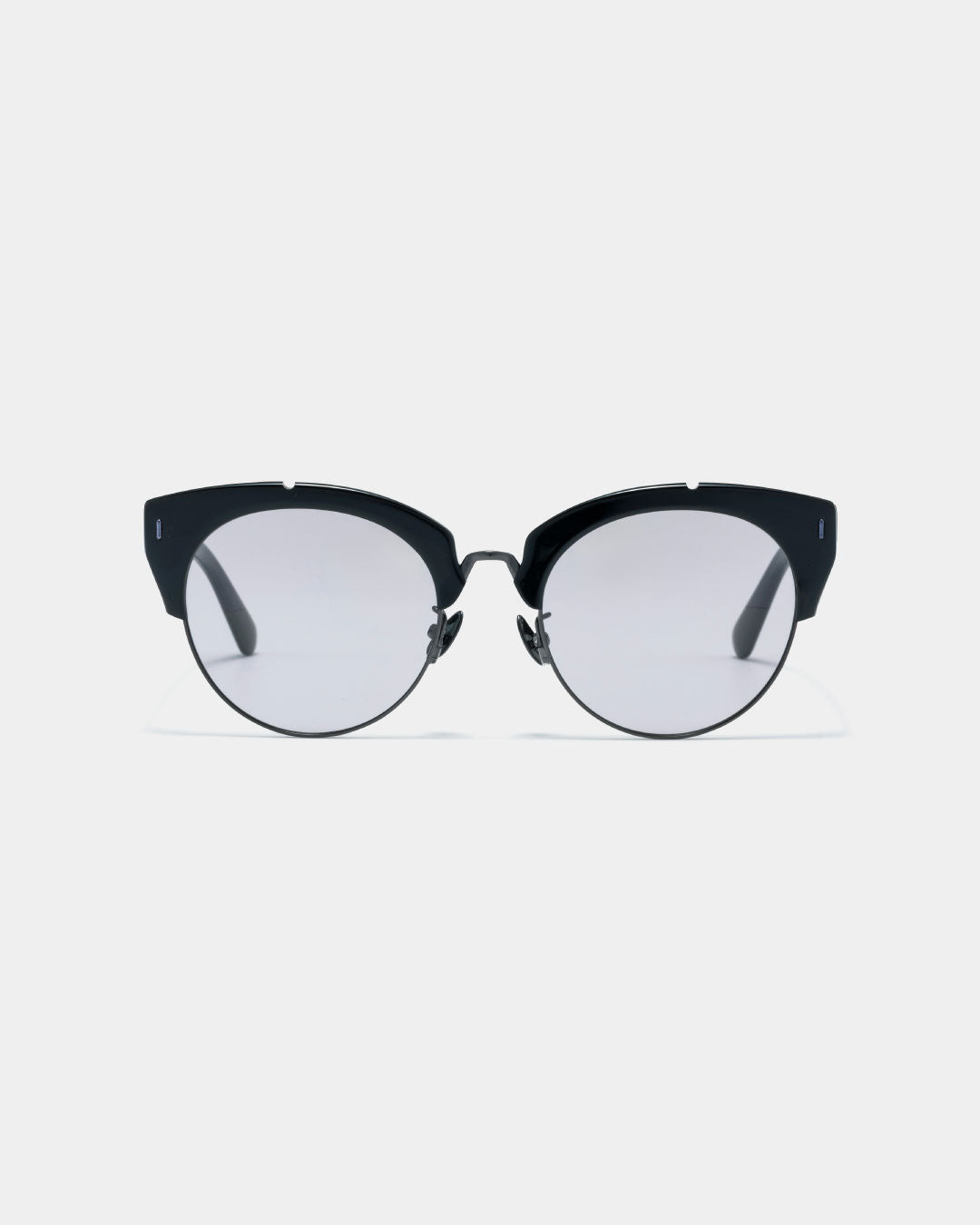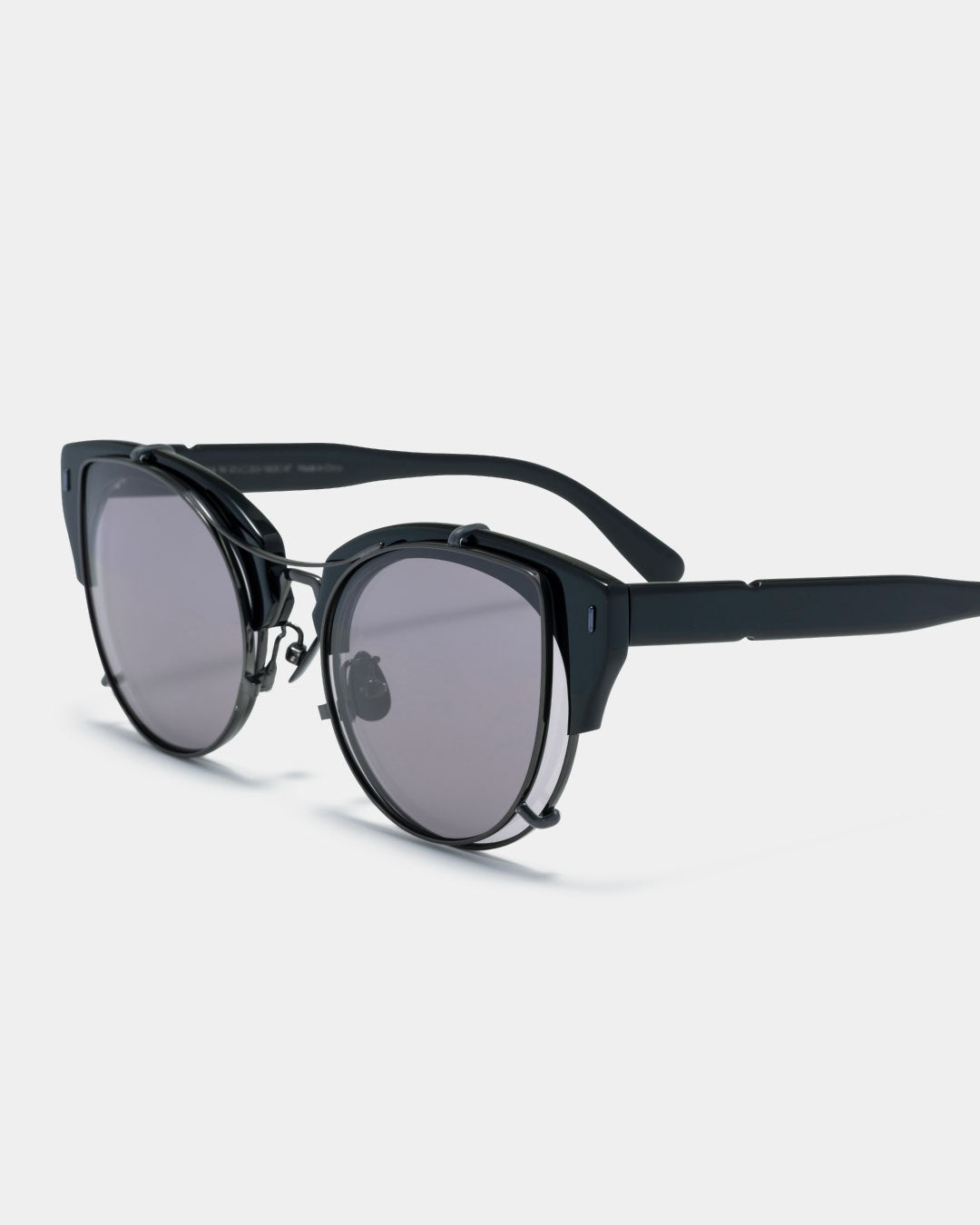 ・上品さとふっくらとした逆三角形のボストン形状と目元が印象的になるブローのディテールを追加したサングラスをオーバーエンジニアリングのアイデアで再構築
