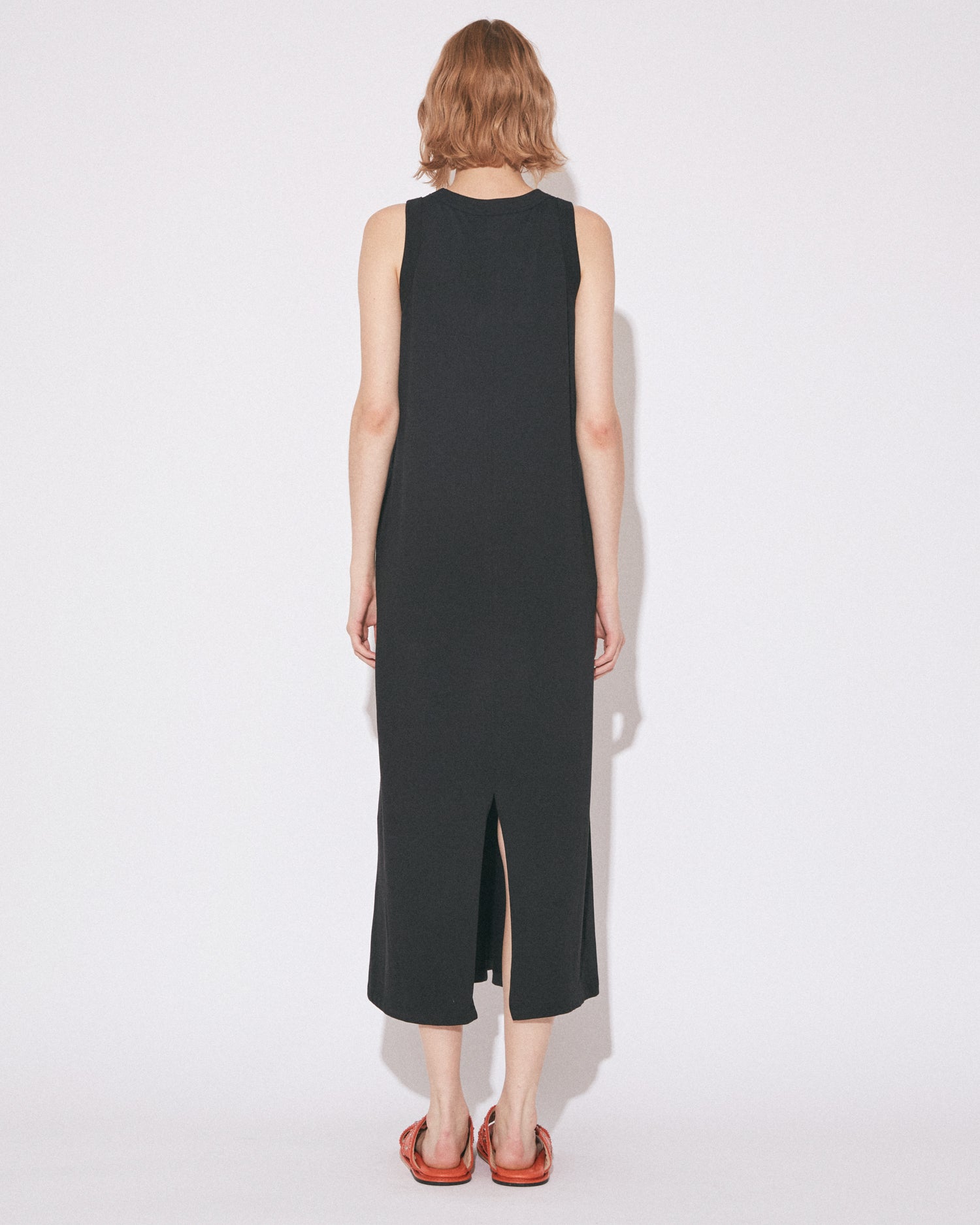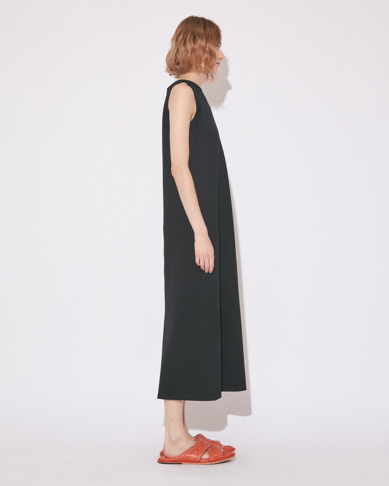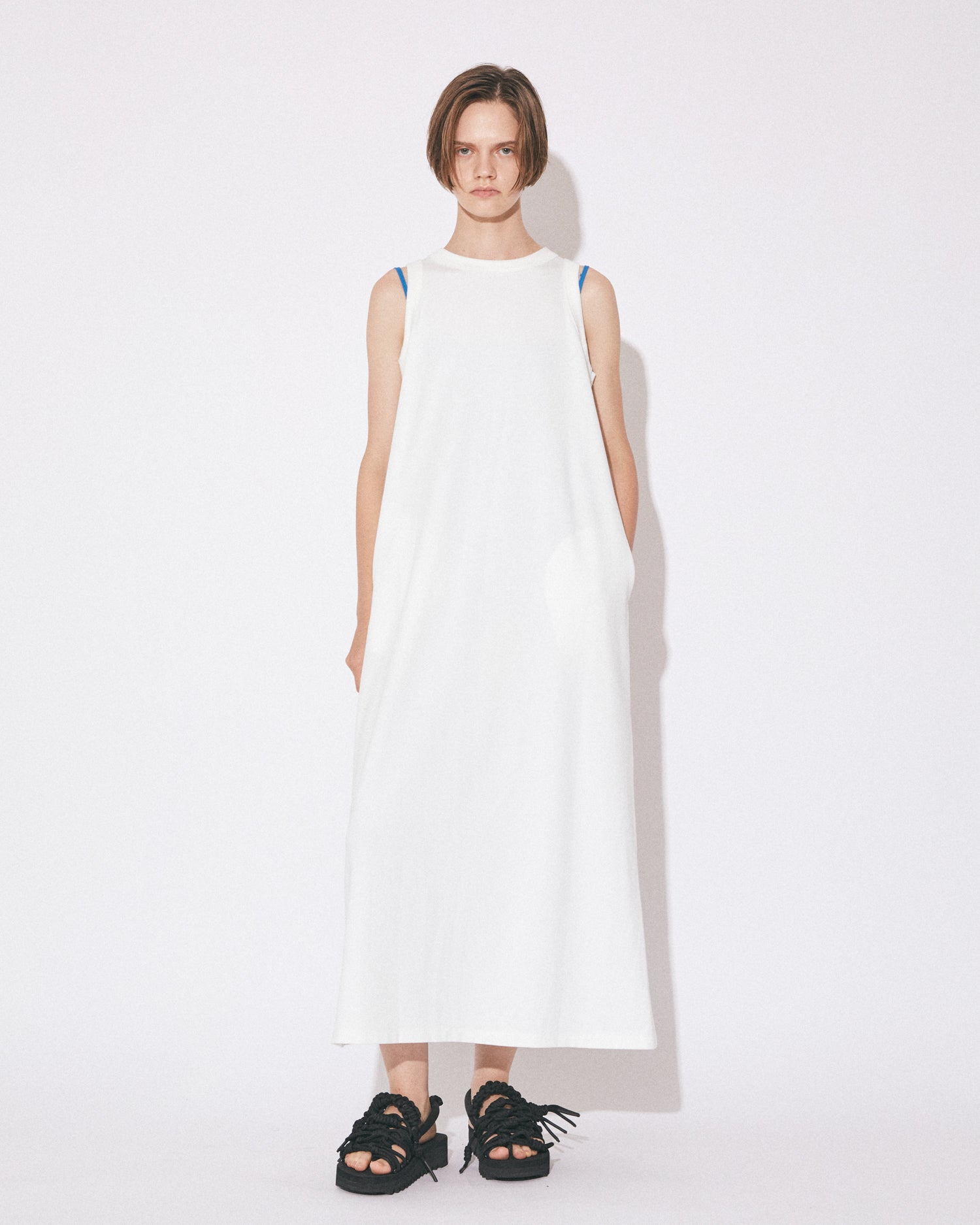 ・ストレートなシルエットのスリーブレスドレス