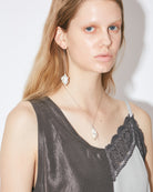 *Online store exclusive This is a clever necklace that comes pre-tangled for people who get excited when chains get tangled, and it has the effect of intentionally creating a cluttered feeling. For people who get excited when they see their chains all tangled up, this necklace is designed to make you feel mess ・The tangled chains are part of the design. - Soldered to ensure it will never come undone ・Brass chain with luxurious silver-white plating By hooking the spring ring on the middle or end of the chain, Length can be adjusted in stages (42cm and 47cm) ・I like the original curved glitter logo plate. ・This chain is designed to be tangled ・It's soldered so it will never untangle ・Luxury white silver plating on brass ・Can be adjusted to two lengths (42 cm and 47 cm), by attaching the clasp to either jump ring ・Our favorite original logo is embroideryossed onto a curved plate *Shopping bags are not provided for beautiful people feels products.