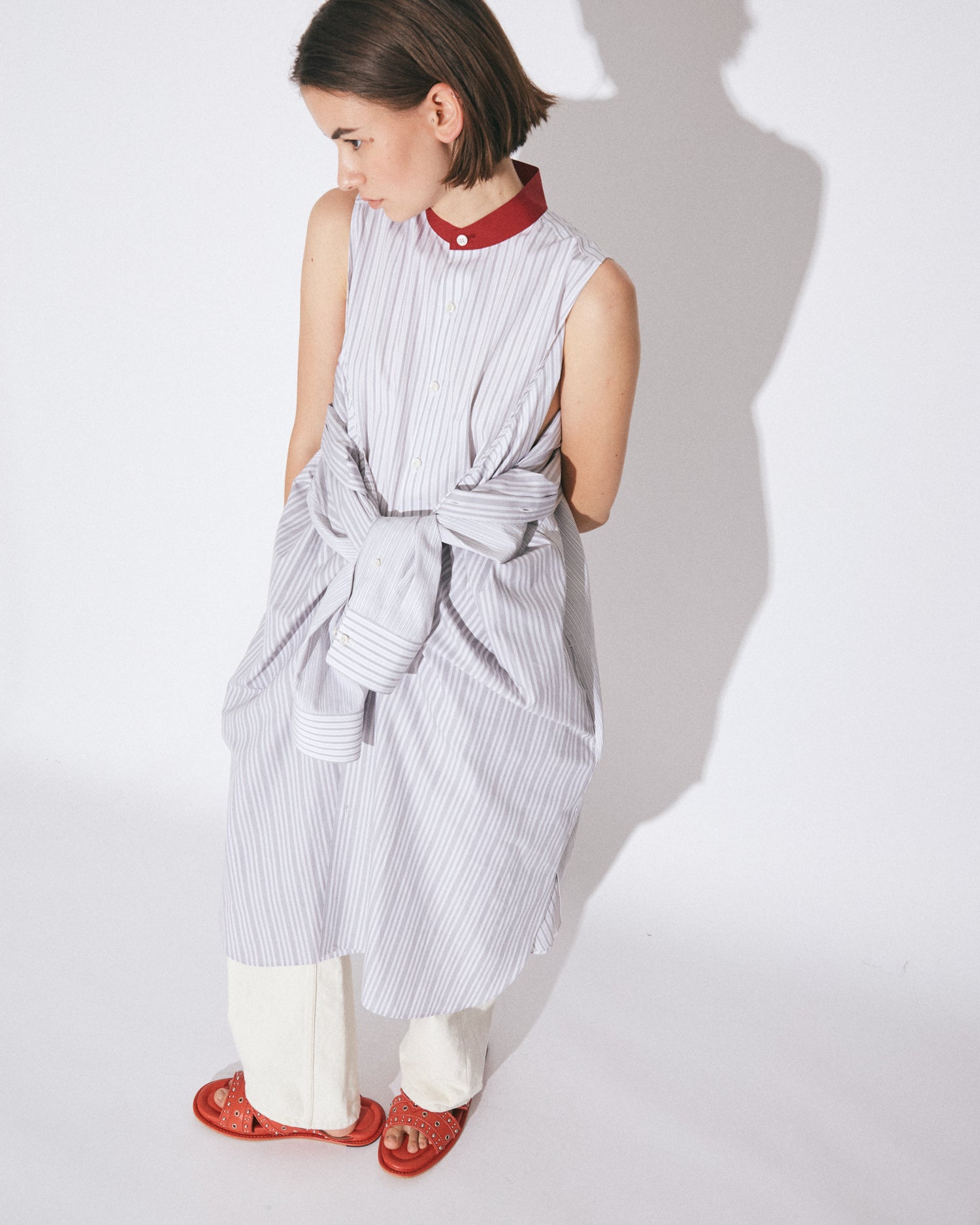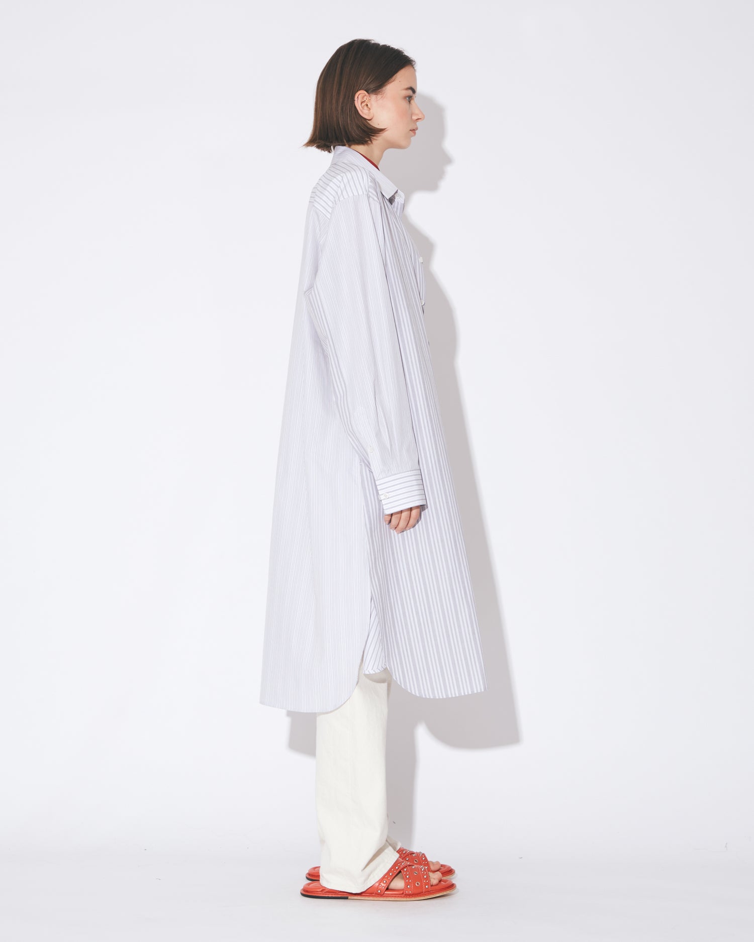 【1月下旬入荷】double-front finx C stripe shirts dress