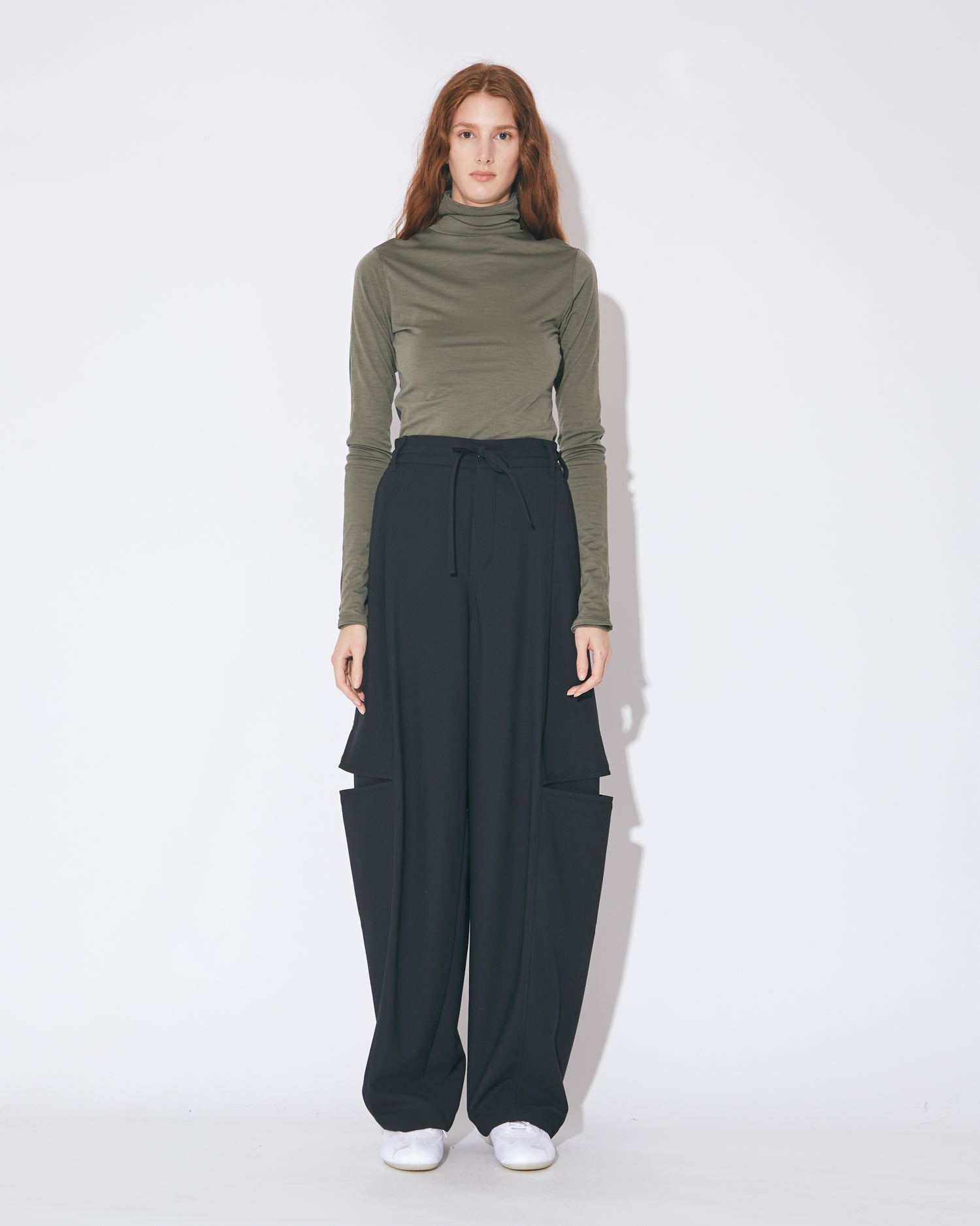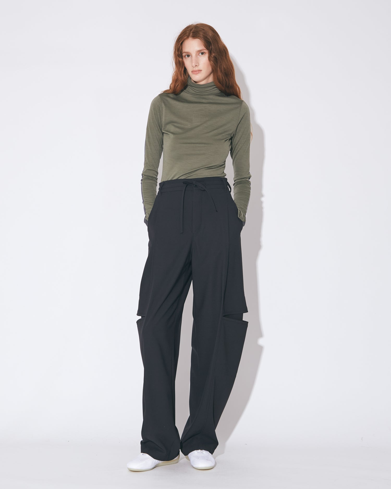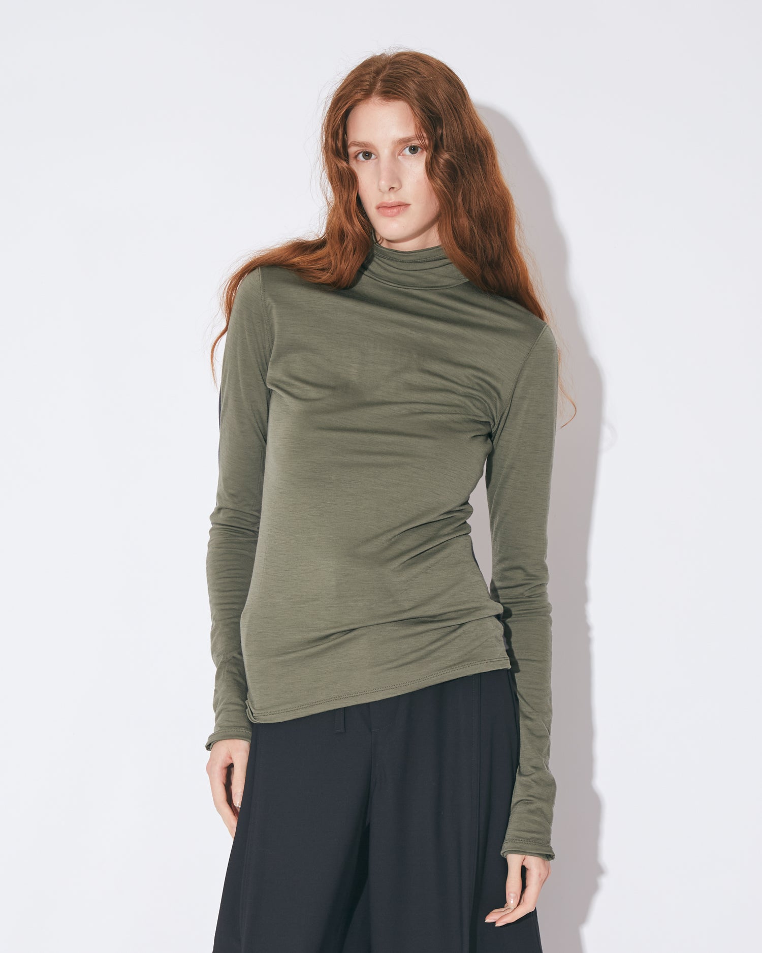 flip washable wool jersey high neck top