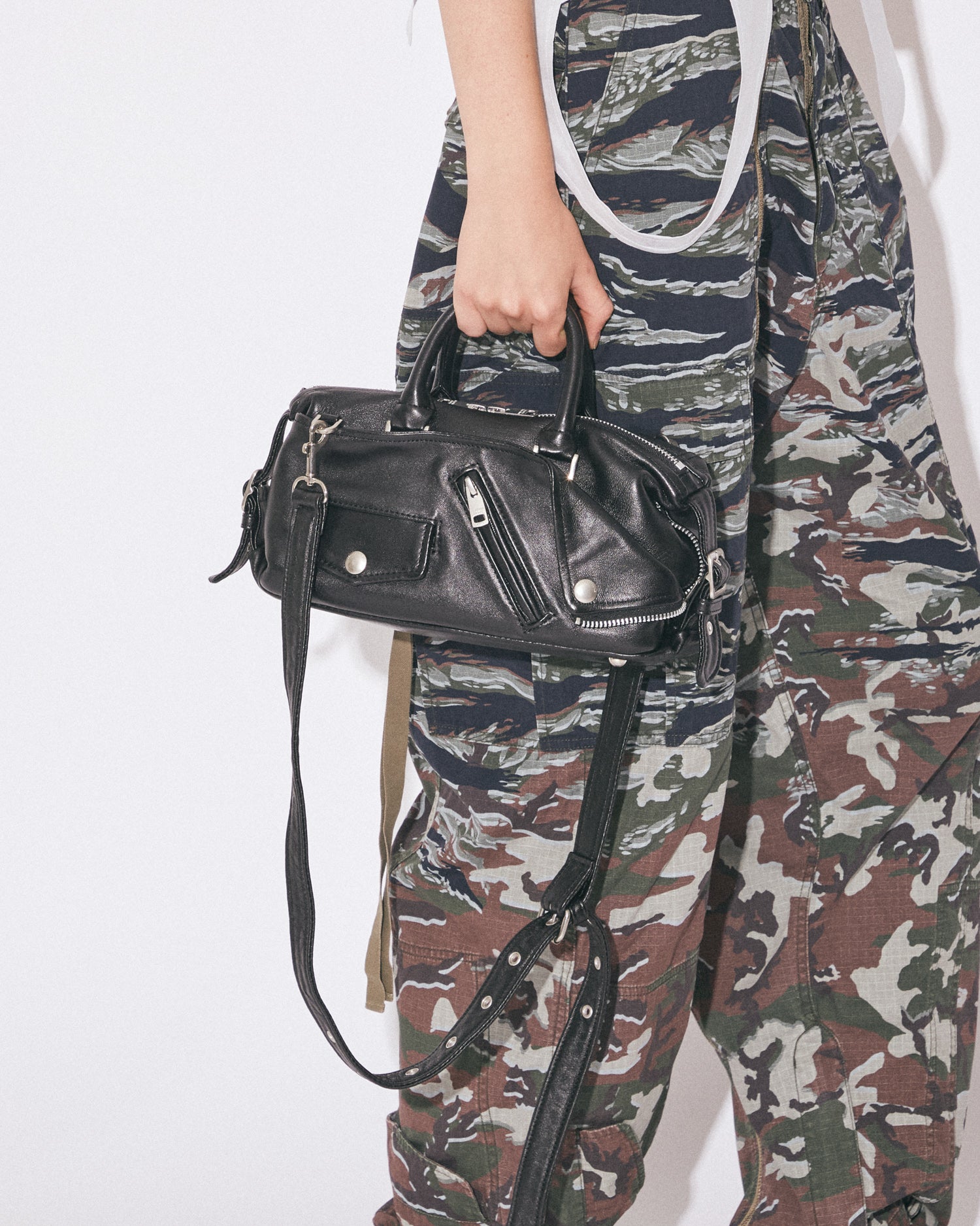 ・ライダースジャケットのディティールを凝縮したボストンバッグ